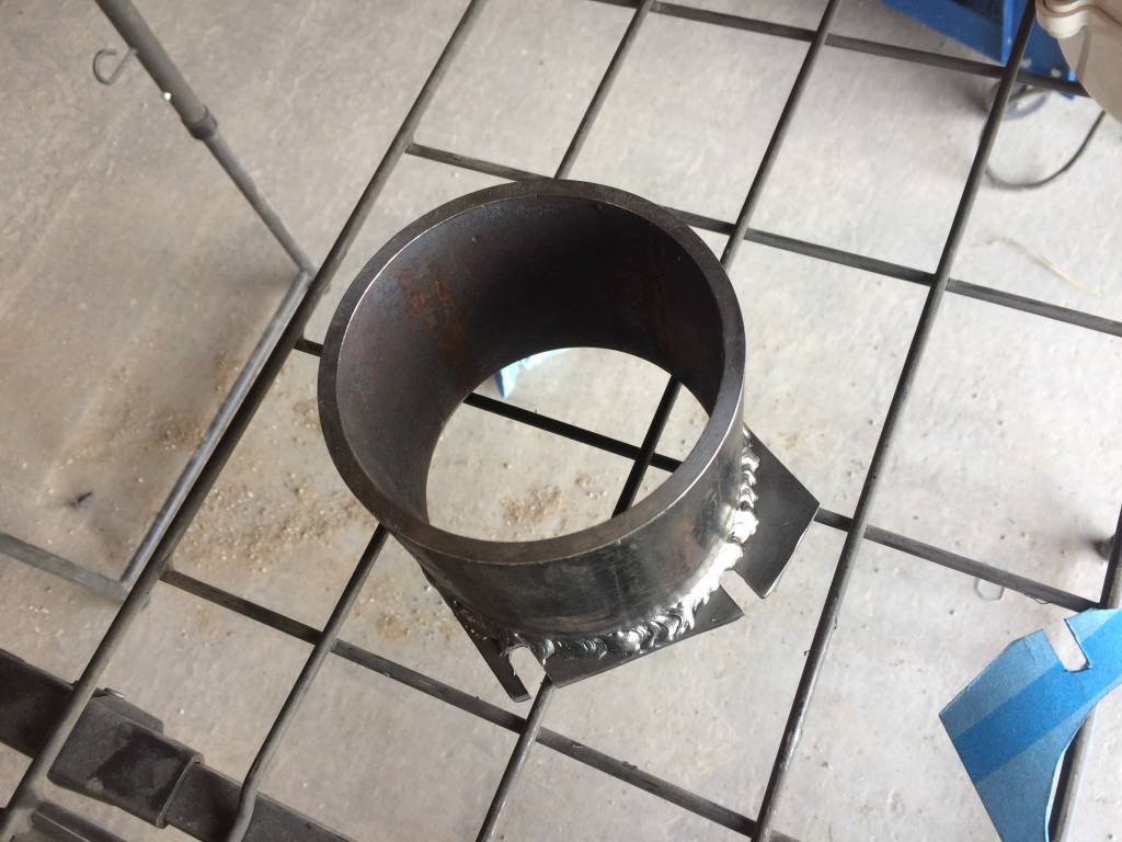 Welded side of the flange. Had to be careful to to make the weld too thick around the mounting holes as it would then interfere with the mounting hardware.