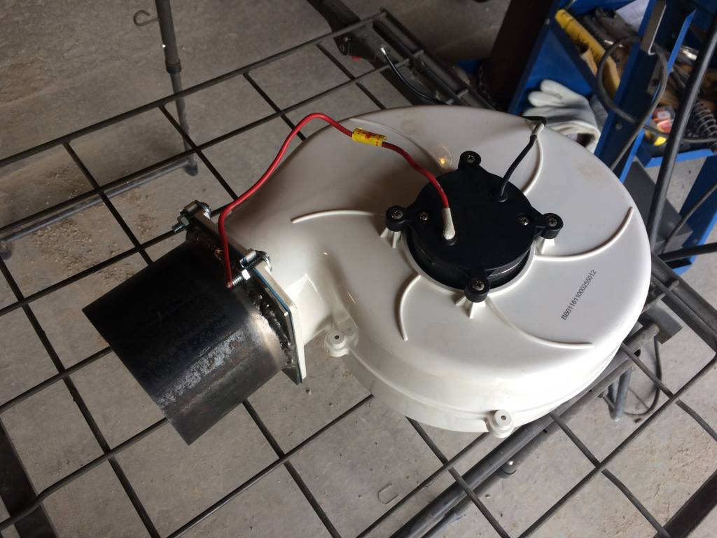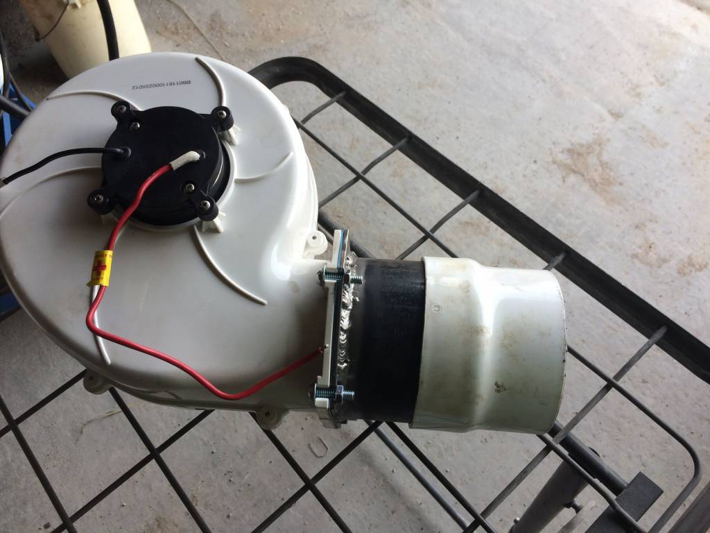 Here is the blower I used for the firepit. Its a SEAFLOW 320 cfm 12v flange mount marine bilge blower for boat ventilation. None of that matters other then voltage, volume of air, and mounting. They can be had off of eBay for relativity inexpensive. They have different mounting models, but i chose the flange mount as it was the easiest for me to work with.