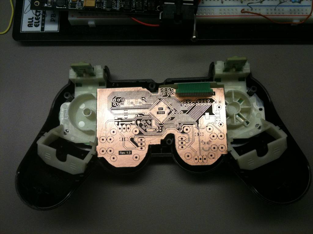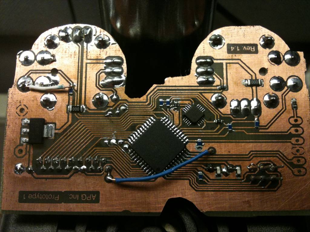 It went thru several revisions before creating a board that fit perfectly in the controller body. Etching a new boards took more time then soldering it seemed.