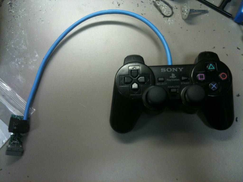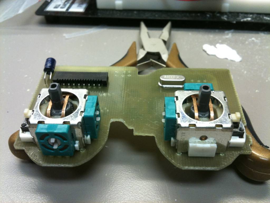 Using the components from the PlayStation controller, The hardest part was drilling the holes for the joystick in just the right spot so when it was all inserted into the controller body that they lined up perfectly center in the holes. If they were off just a bit they would rub on the side of the case and stick.